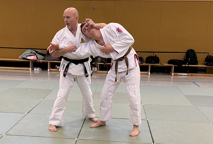Unter der Leitung von Olaf Scher (2. Dan Jiu-Jitsu) stand der Lehrgang ganz im Zeichen der technischen Vielfalt und der praxisnahen Anwendung. In den drei intensiven Trainingsstunden vermittelte der erfahrene Referent eine gelungene Kombination aus klassischem Jiu-Jitsu und Einflüssen anderer Kampfkünste wie Boxen, Panantukan und Wing Chun.